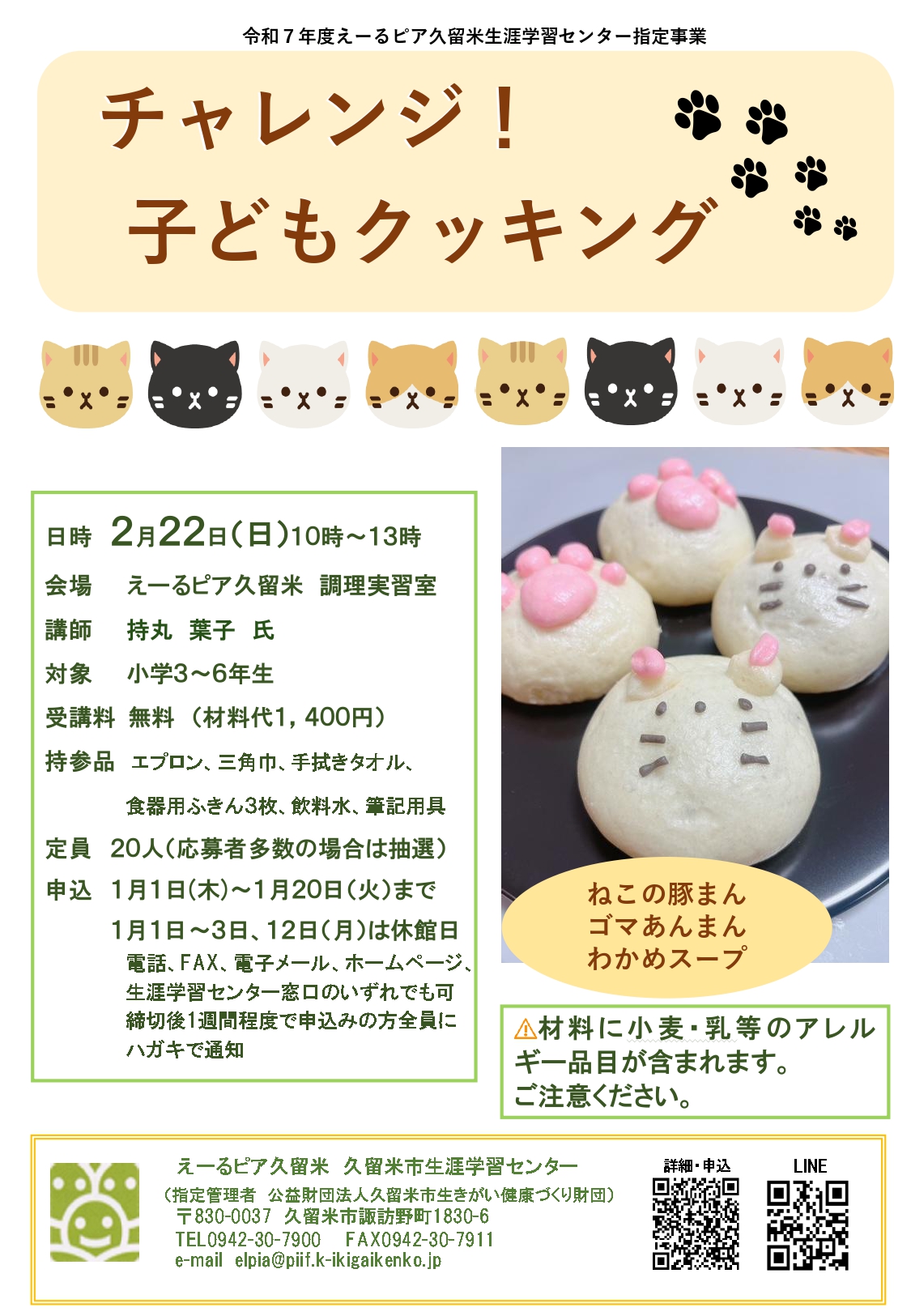 「ねこの日」をテーマに、ねこの豚まん・ゴマあんまん・わかめスープ作りにチャレンジします