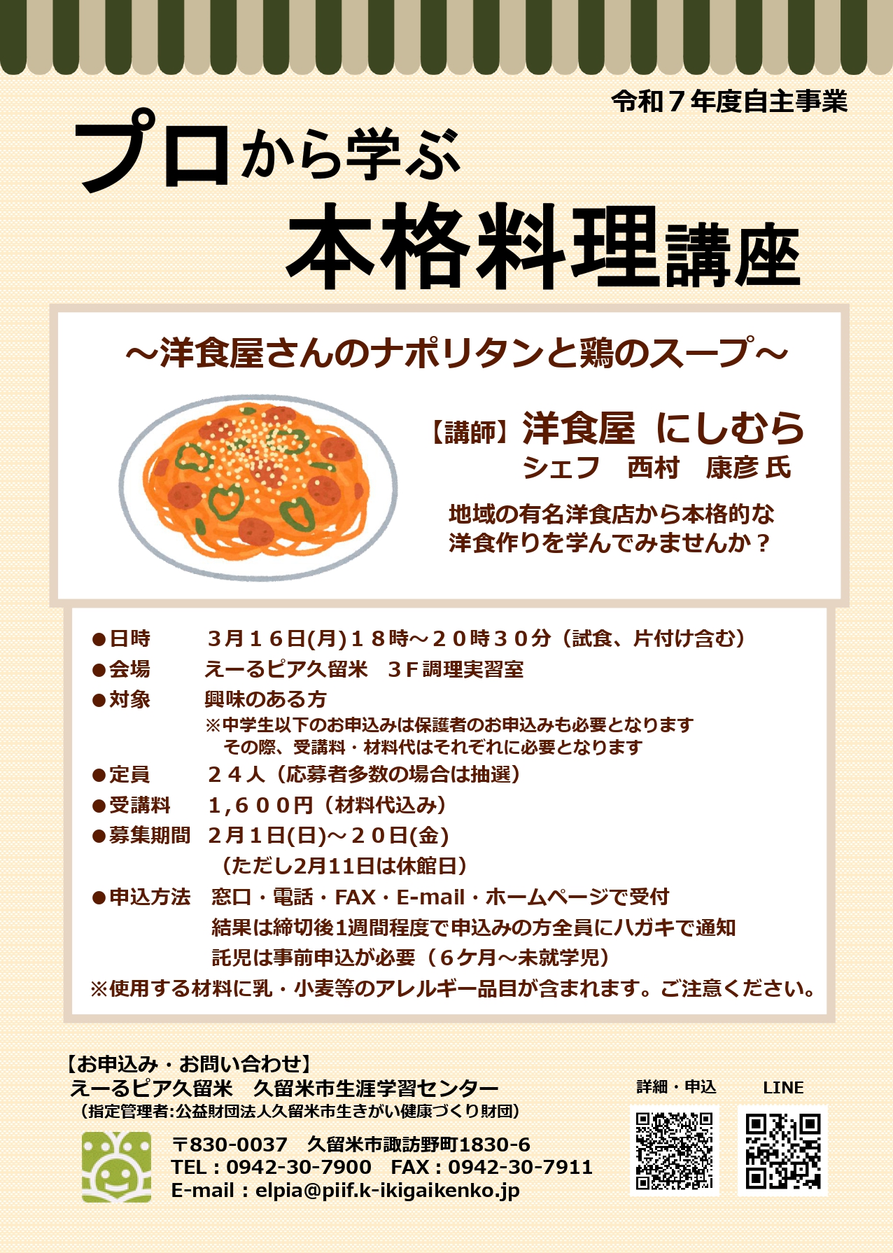 | 開催場所 | えーるピア久留米 3階 調理実習室 |