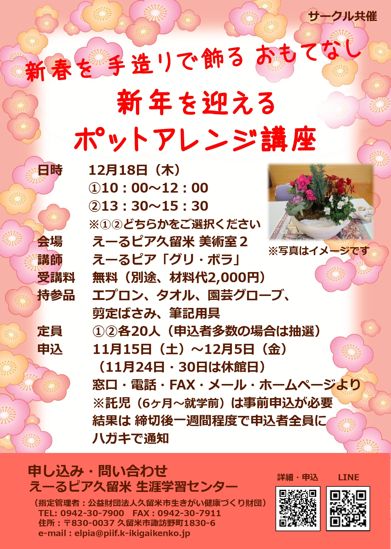 毎回大好評の寄せ植え講座。 今回は新年を迎えるポットアレンジ講座をします。