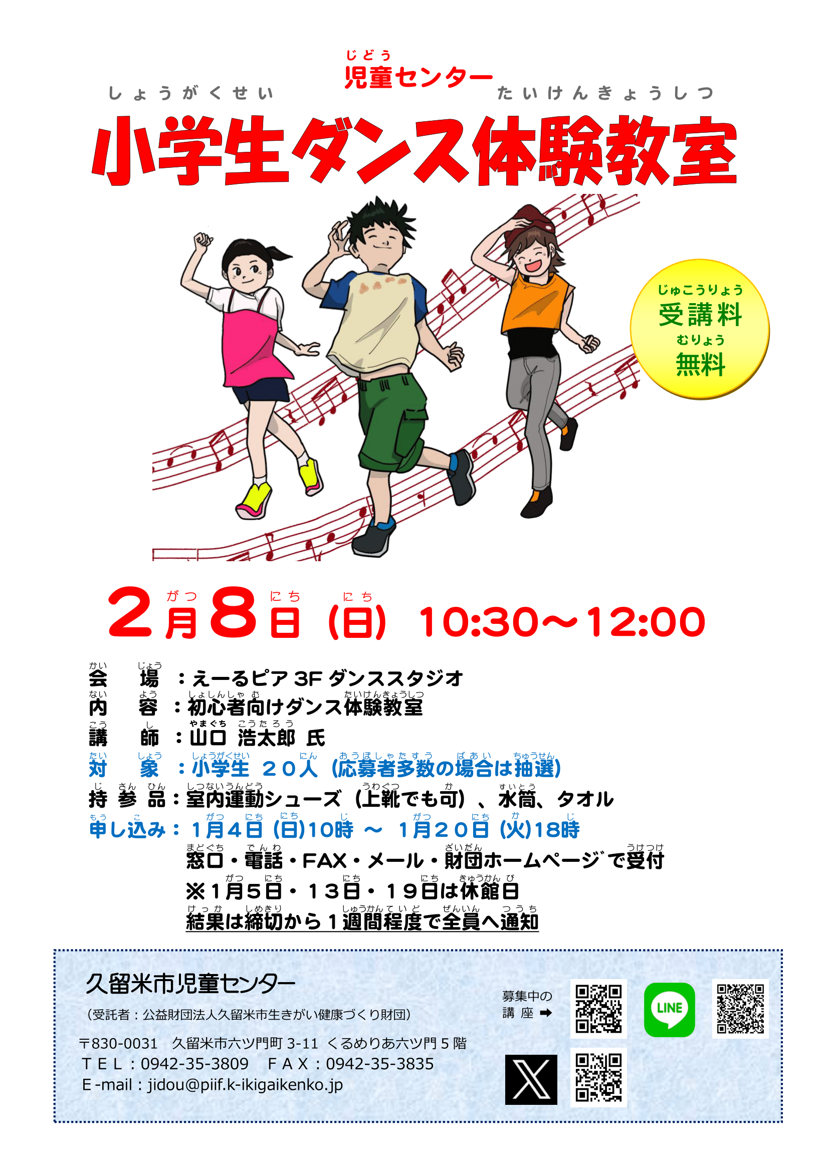 | 開催場所 | えーるピア久留米 ダンススタジオ(3階) |