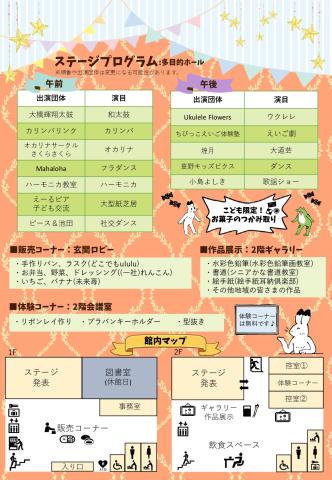 耳納市民センター多目的棟で学習されている方々、地域で活動されている皆さまの日頃の成果を“ 作品展示 ” や “ ステージ発表 ”で披露して頂きます。 また軽食販売、イチゴ販売やリボンレイつくり、プラバンキーホルダーつくり体験等いろんなイベントも準備しています。 ご家族、ご友人、ご近所など、皆様のご来館をお待ちしています。